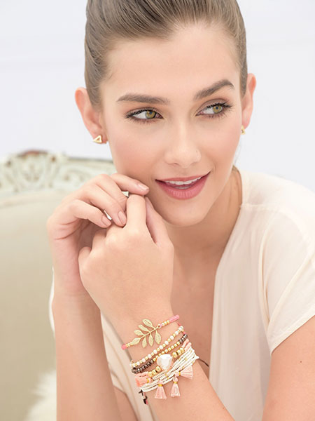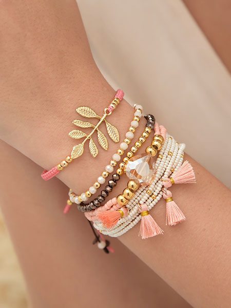 Set de pulseras con un diseño contemporáneo, elaborado en perlas dulces y baño de oro 18